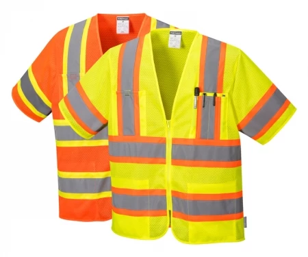 The Portwest US383 Augusta Hi Vis Sleeved Vest is a lightweight, short-sleeved, Hi visibility safety vest that uses both 2” silver reflective tape as well as contrast material to provide increased visibility for the user. This reflective vest is made from 100% polyester mesh, making it breathable and cool during warmer months. This short-sleeve vest meets ANSI Class 3 standards.