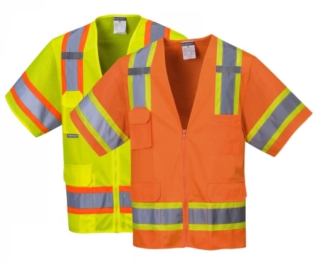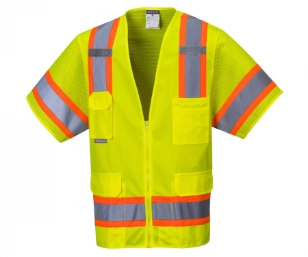 The Portwest US373 Aurora Hi Vis Sleeved Vest is a safety vest made from 100% polyester wrap knit material. The back and sleeves are lined with polyester mesh material. This reflective jacket also comes with 2” reflective tape as well as contrast material that is also made from Polyester Mesh.