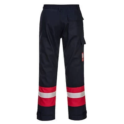 This trouser is constructed with high visibility reflective tape double stitched for enhanced visibility. Features include triple stitched seams, high visibility strips on legs, knee pad pockets, ruler pocket, front fly brass zip and adjustable bottom leg opening.