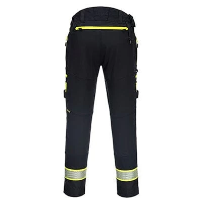 The DX4 Work Trouser is ergonomically designed and uses the targeted placement of dynamic 4X stretch fabrics to give maximum range of movement when working. The trouser features a high-rise back waistband with side elastication, ensuring protection in all working positions. Pre-bent top loading adjustable knee pad pockets, generously sized front pockets and multi-functional zip thigh pockets offers secure storage of phone, pens and tools. Triple stitching throughout for maximum durability.
