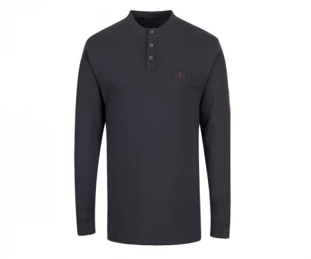 The flame resistant antistatic Henley provides protection from flame and static with ribbed cuffs for additional safety. The moisture wicking fabric is sure to keep the wearer warm, cool and dry.