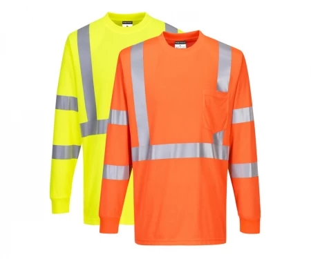 The Portwest S192 Hi Vis Long Sleeve T-Shirt (Rib Cuff) is a Reflective Hi vis shirt that uses 2” silver heat seal reflective tape on the torso for added visibility. This long sleeve shirt is made with moisture wicking fabric that keeps theuser dryer for longer.Â