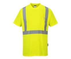 The Portwest S190 Hi Vis Pocket T-Shirt is a reflective shirt made with 100% polyester and features a single pocket on the chest. This short sleeved T-shirt is lined with 2” silver heat seal reflective tape on the chest to enhance user visibility.