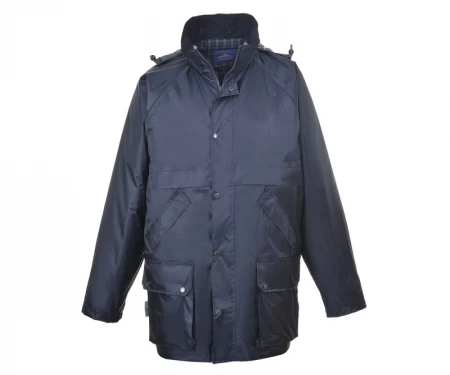 The Portwest US430 is waterproof winter jacket with sealed seams and a quilt lined interior with corduroy collar Pockets: 4 front 1 cell phone 2 inner. Print access for garment customization. It also comes with a pack away adjustable hood. Generous fit for wearer comfort.