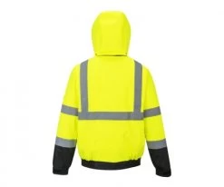 The US364 by PortWest is an ANSI Type R Class 3 high visibility, 2-in-1 bomber jacket. This hi vis workwear meets ANSI Class 3 Standards with 2″ silver reflective tape which aligns the jacket. This waterproof PU coated jacket is made with 100% polyester 300D oxford weave. A pack away adjustable hood, elasticated waistband, adjustable cuffs and sealed seams provide additional comfort. The detachable fleece liner provides additional warmth. (SEE SIZE CHART UNDER SPECIFICATIONS)