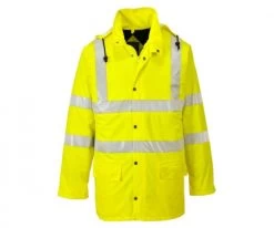 The US491 by PortWest is an ANSI Class 3 high visibility yellow Sealtex Ultra unlined rain jacket. This 5.5 oz. Sealtex Ultra fabric design features a pack away adjustable hood and adjustable cuffs with snap closure. 2 Lower pockets with flaps are featured in front while a storm-flap with two-way-zipper and snap closure provides further protection from rain. ANSI Class 3 Standards are met with 2″ Silver heat sealed reflective tape which aligns the jacket.