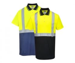 The Portwest S479 Hi Vis Two Tone Polo is a reflective polyester polo shirt that is lined with two bands of 2” silver reflective tape on the chest and torso for added visibility. This two tone shirt also has contrast material on the material on the lower half to protect against dirt.
