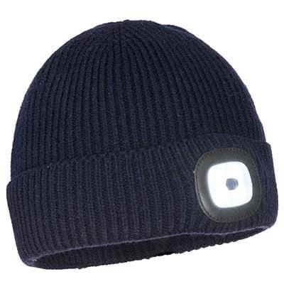 This warm and comfortable acrylic beanie hat features a removable LED front light for superior visibility in low light conditions. The rechargeable LED can be charged in a USB port.